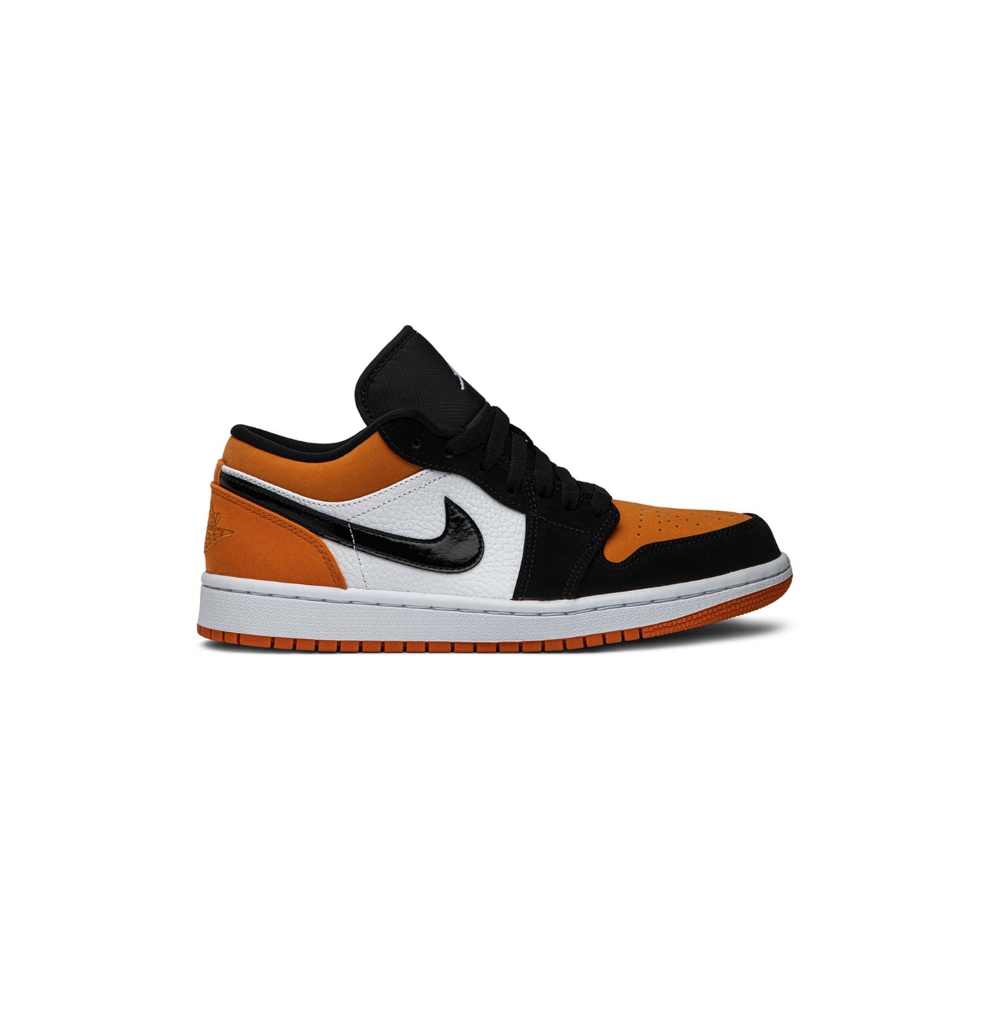 The Air Jordan 1 Low 'Shattered Backboard' commemorates when Michael Jordan broke a backboard during a 1985 exhibition game in Italy. Inspired by the OG AJ1, this low-cut version is presented in Starfish, black and Sail, a nod to the jersey worn by MJ during the game. The shoe comes with a leather upper, the iconic Jumpman logo on the tongue and the classic Wings logo embroidered on the heel. An encapsulated Air-Sole unit and a rubber outsole with a pivot point tread pattern finish the model.